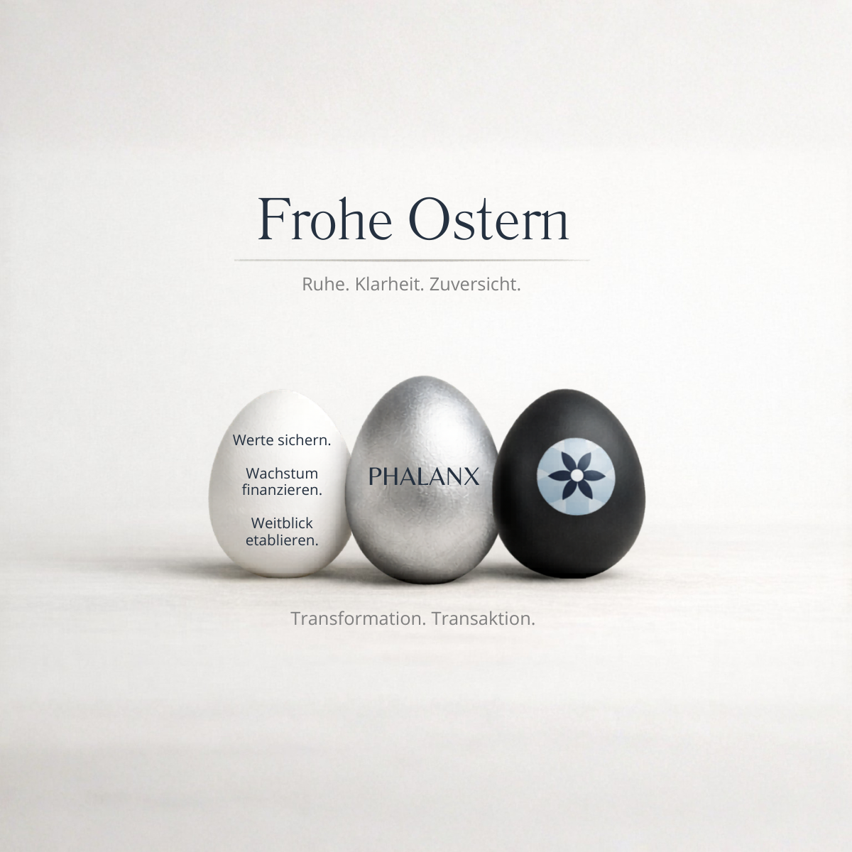 Für uns als Phalanx ist das mehr als ein Feiertagsgruß. Wir erleben jeden Tag, dass Transformation, Nachfolge, Restrukturierung oder Transaktionen nie nur fachliche Aufgaben sind. Es geht immer auch um Menschen, Verantwortung, Vertrauen und die Fähigkeit, auch in unsicheren Zeiten Orientierung zu geben.