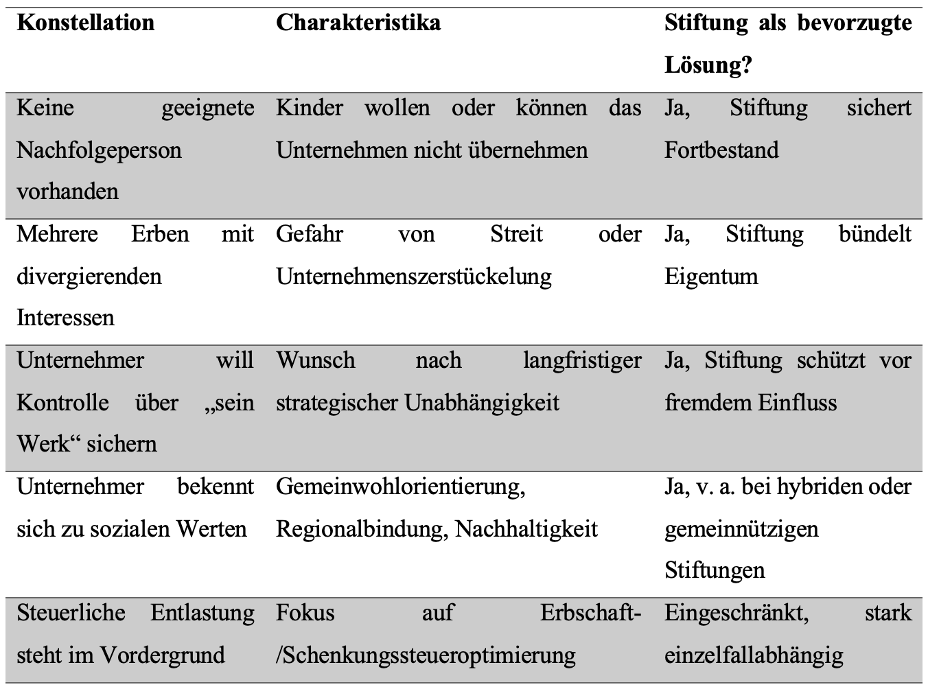 Diese Entscheidungslogik verdeutlicht: Die Stiftung ist keine universelle Lösung, aber unter bestimmten Bedingungen ein wirkungsvolles Instrument.