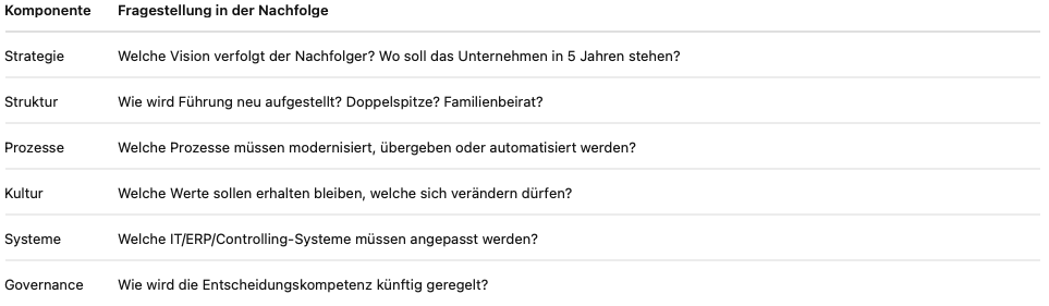 ✅ Ist der Nachfolger frühzeitig eingebunden – kommunikativ & operativ?